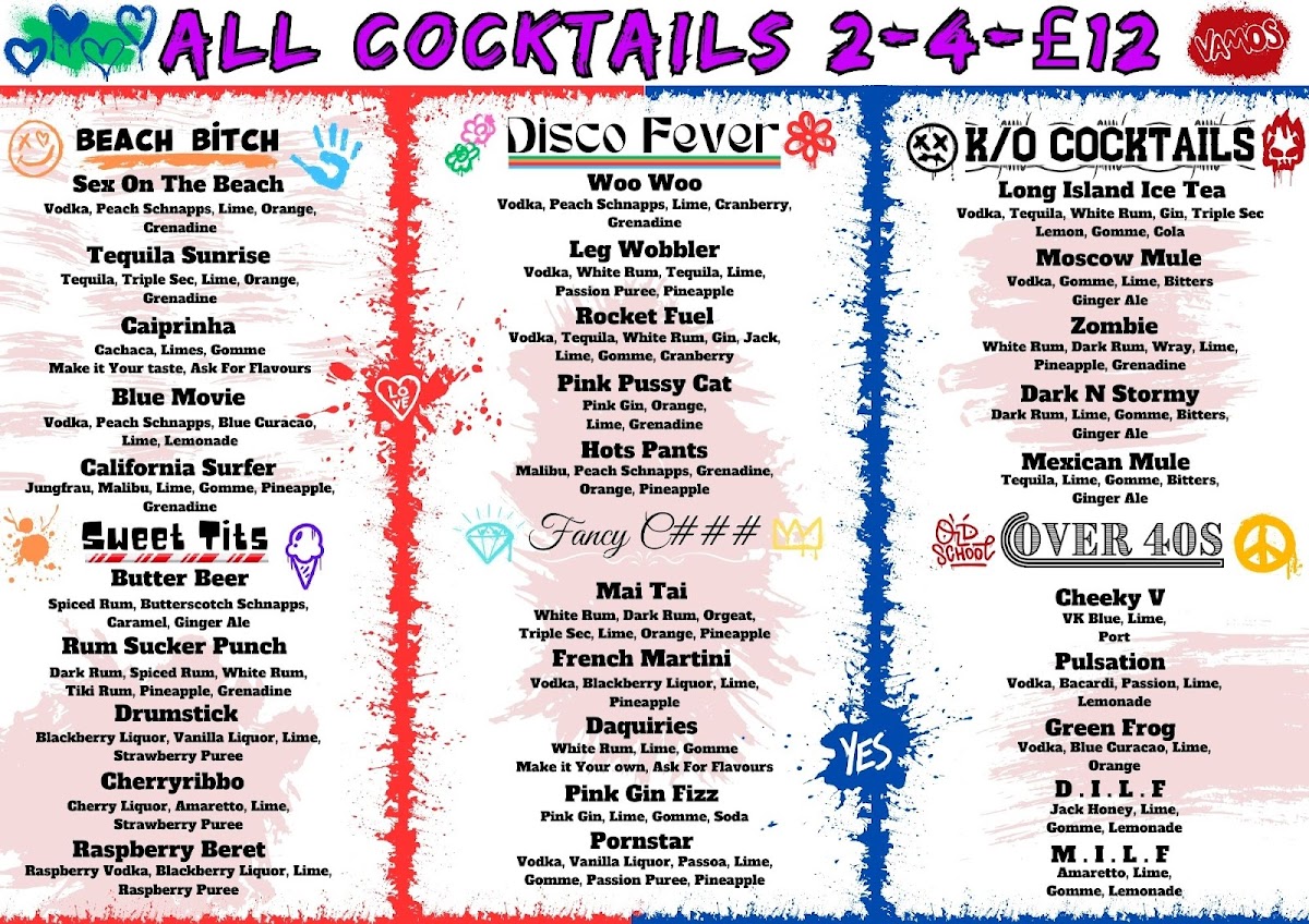2-4-£12 all the time or 2-4-£10 Student Deal